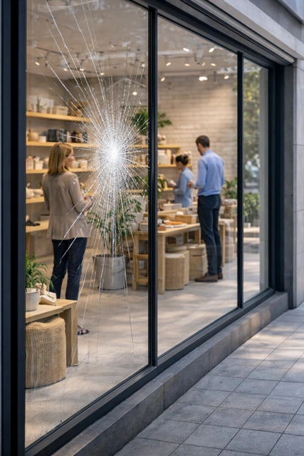 Dans les commerces et espaces de vente, les vitrines et accès vitrés représentent une exposition directe. Les tentatives d’effraction ciblent fréquemment ces zones accessibles depuis l’extérieur. La dispersion des éclats lors d’un bris, qu’il soit volontaire ou accidentel, génère également des risques pour les personnes présentes. Ces enjeux touchent aussi bien les commerces de centre-ville que les zones commerciales périphériques.